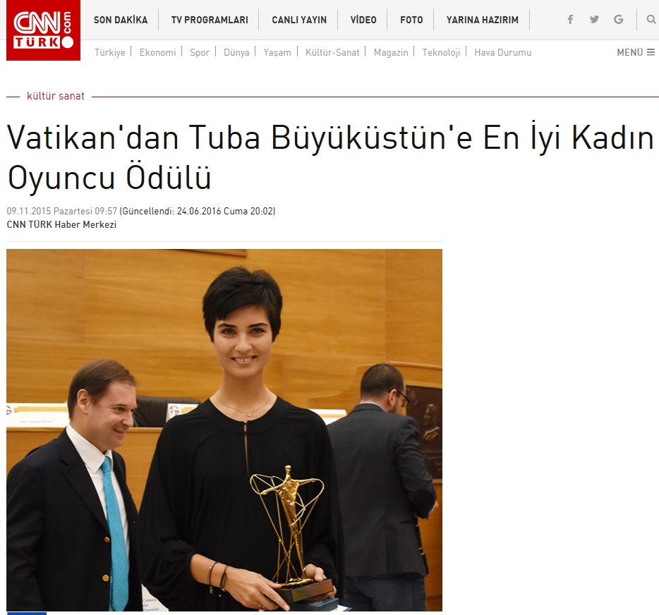 Grosso risalto – su giornali, tv, social e riviste patinate – anche per Tuba Büyüküstün, giovane attrice turca, che nella passata edizione ha ricevuto il Premio Sciacca “Cinema e Teatro”: già durante la cerimonia il profilo Facebook del Premio Sciacca fu invaso dalle richieste dei fan di mezzo mondo che volevano avere foto in esclusiva.